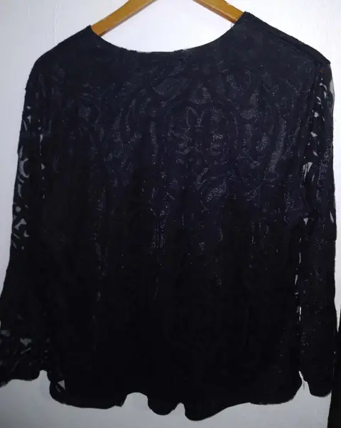 Blusa transparente con forro, aplicacion de encaje, cuello V, 110 cm contorno de pecho, 60 cm largo. Marca Studio SiEnvió a la brevedad.Todas las compras tienen obsequio