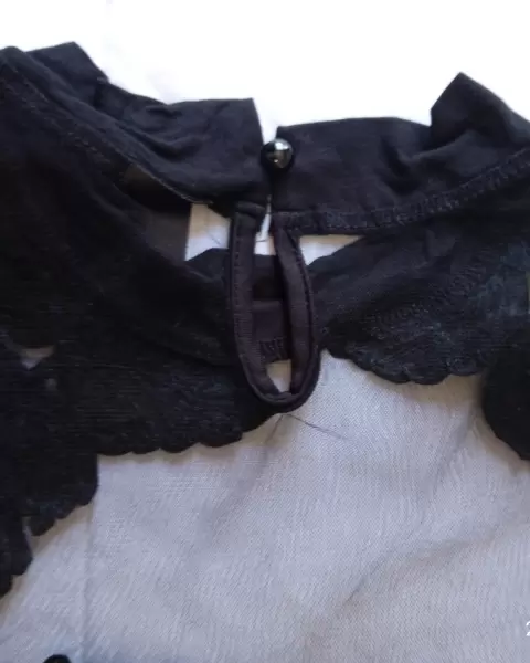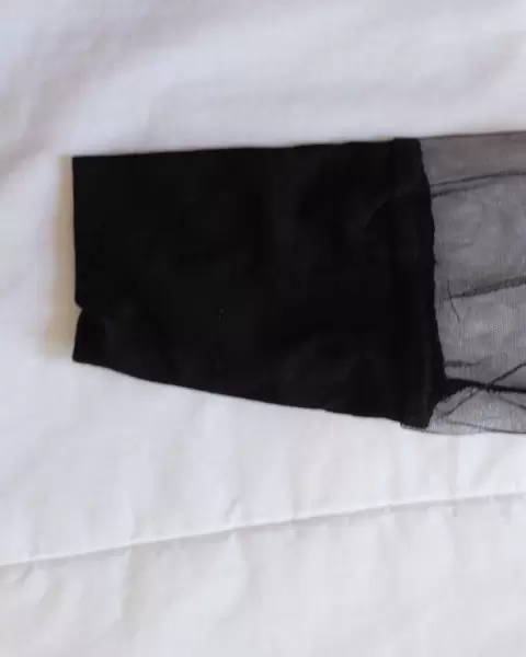 Blusa negra transparente elastizada de manga larga floreada de enfrente y de espaldas es lisa transparente, es Talla Mediana que da de 30 a 32