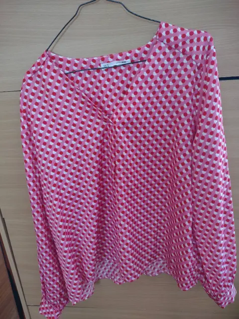 Blusa de textura suave estampado alegre realza cualquier outfit. Rosa rojo y blanco. Puedes usarla para vestir elegante o casual según lo combines