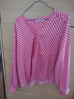 Blusa ultracomoda. Blusa de textura suave estampado alegre realza cualquier outfit. Rosa rojo y blanco. Puedes usarla para vestir elegante o casual según lo combines