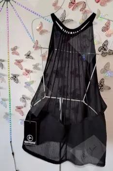 Blusa verano transparente. Blusa que puedes usar de manera casual o para ir al gym. Es stretch y color negro, la parte del frente es transparente y la espalda esta formada por tiras que hace que se vea super coqueta.Es nueva y con etiqueta.Marca: 90 DEGREESTallas disponibles: LMedida: largo 68 cms