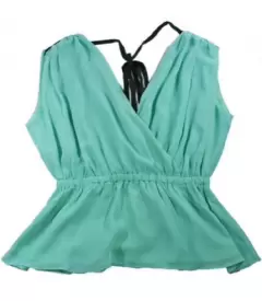 Blusa verde con tirantes gruesos talla M. Blusa verde co. Tirante grueso talla M , con lazo en color negro m, drapeada y con cuello al frente en V y escote espalda también en V súper linda, tela fresca con forro