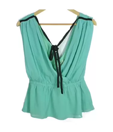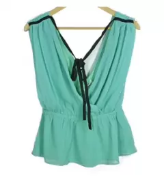 Blusa verde co. Tirante grueso talla M , con lazo en color negro m, drapeada y con cuello al frente en V y escote espalda también en V súper linda, tela fresca con forro