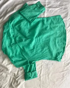 Blusa color verde, talla M, de tela súper fresca semi transparente, tiene para usar de dos estilos en las mangas largas o tres cuartos, no trae ningún detalle, nunca de uso esta nueva sin etiquetas