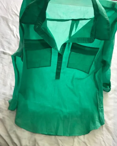 Blusa verde semitransparente. Blusa color verde, talla M, de tela súper fresca semi transparente, tiene para usar de dos estilos en las mangas largas o tres cuartos, no trae ningún detalle, nunca de uso esta nueva sin etiquetas