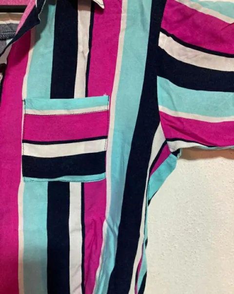 Blusa tipo camisa, manga corta y botones, una bolsa al frente