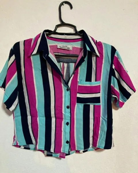 Blusa Vertiche. Blusa tipo camisa, manga corta y botones, una bolsa al frente