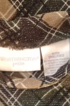 Esta Bella Blusa es genial para vestir o casual.Elegante, pràctica y libre de arrugas (No necesitas plancharla).Es marca Worthington talla Chica.La Tela es muy linda ya que tiene destellos dorados que hara tu Outfit ùnico.88% Poliester, 4% Nylon, 3% metàlico, 5% spandex.