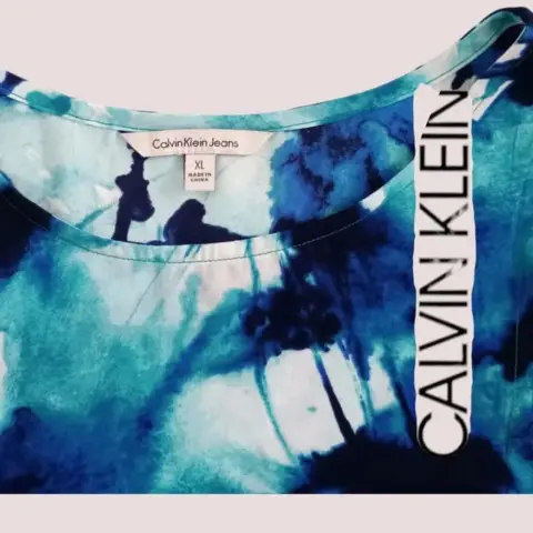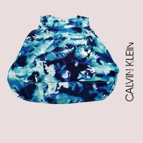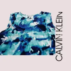 Blusa CK jeans t XL cuello redondo corte cola de pato, aberturas laterales 43cm hombros 57cm axilas 25cm profundidad de sisa 66cm largo frontal 77cm largo trasero. Material 100% poliéster