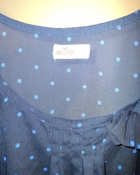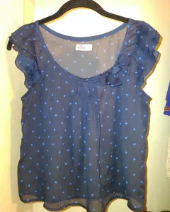 Blusa Xs Hollister transparente. Blusa azul marino con puntos azul clarito, transparente, marca Hollister. Mide de axila a axila 44 cm.