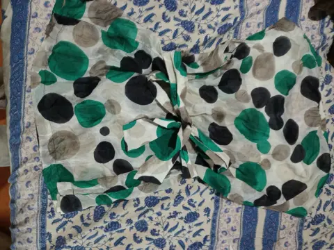 Linda blusa de Zara ,de seda , blanca,con lunares verdes y negros