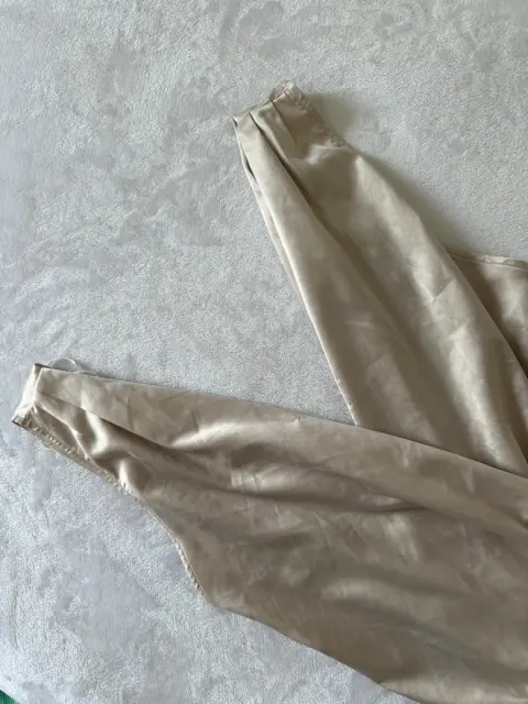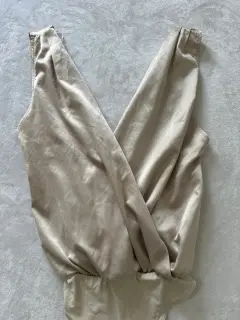Blusa talla S tela tipo satin, cerca del escote tiene un pequeño jalón pero casi no se notan más porque es holgada