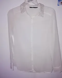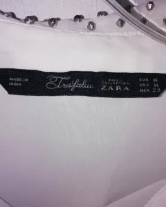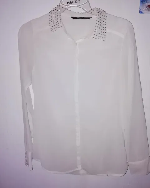 Blusa Zara en muy buen estado,solo tiene unas manchas de maquillaje pero son discretas. Le tira mas a un color beige Super bajito. Es muy fresca la puedes usar con un top por dentro ya que es tela que se transparenta
