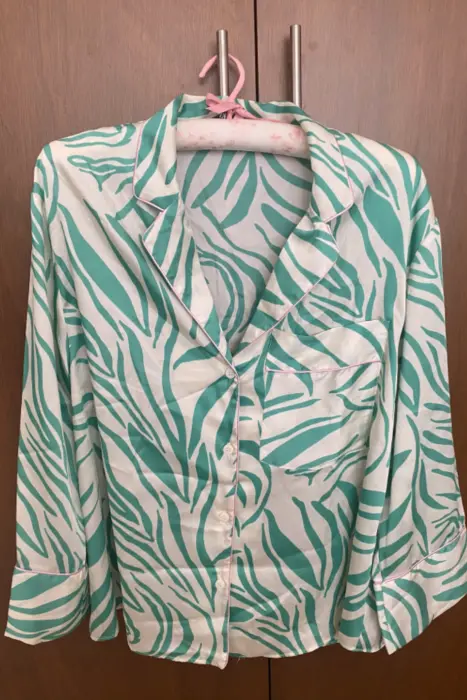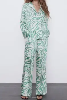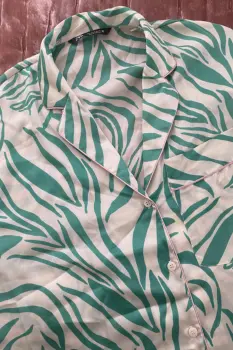 BLUSA CAMISA ZARA ZEBRA VERDE PIJAMERA MANGA LARGA