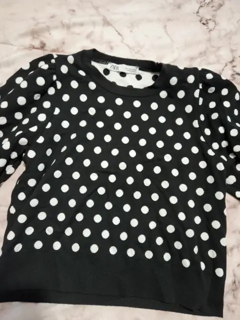 Blusa zara knit talla s. Tela tejida knit manga abullonada manga 3/4.Se puede usar doble porque tuene doble vista. Lunares