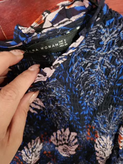 Blusa zara nido de abeja talla s, color negro, rojo azul rey. Nudo de abeja frontal y en la parte trasera manga abullonada. Y elastico en mangas.