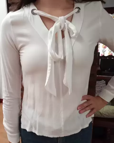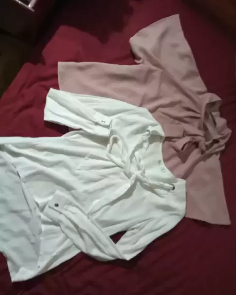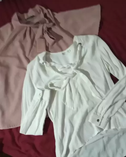 2x1 Blusitas blanca y rosa palo, con moño al frente, lucen bonita la blanca es de algodón, la otra no es algodón pero es fresca