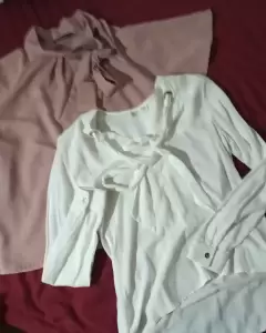 Blusas 2x1. 2x1 Blusitas blanca y rosa palo, con moño al frente, lucen bonita la blanca es de algodón, la otra no es algodón pero es fresca
