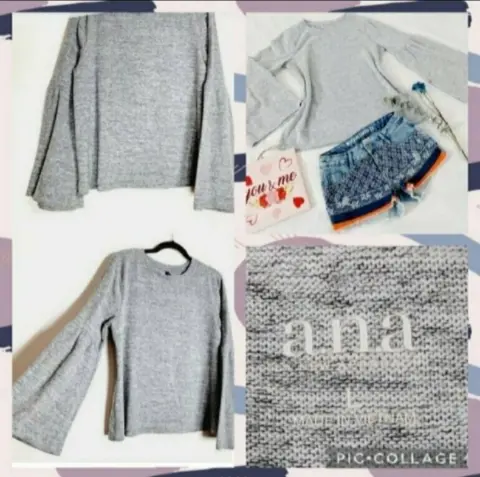 Bella blusa tipo suéter calientita.Con bastante strech.Tono gris.Manga acampanadaTalla L.Sin detalles.Como Nueva.