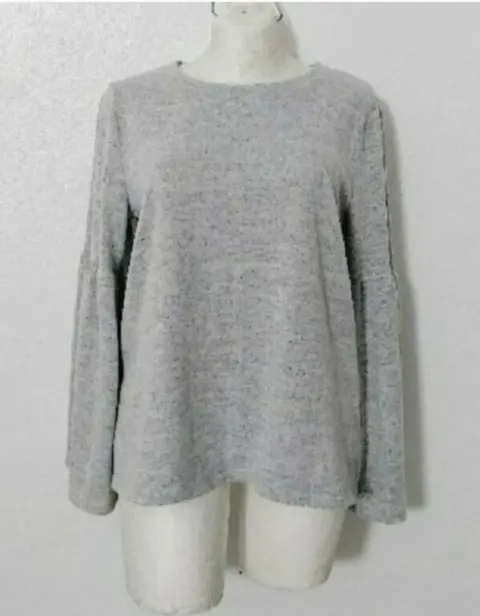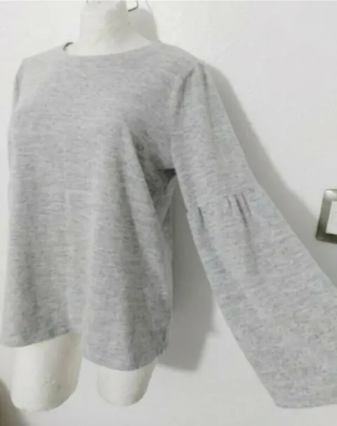 Blusa/suéter con manga acampanada. Bella blusa tipo suéter calientita.Con bastante strech.Tono gris.Manga acampanadaTalla L.Sin detalles.Como Nueva.