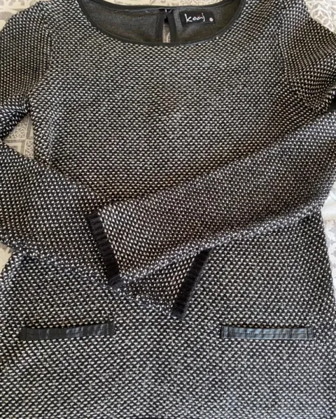 Blusa/suéter color negro con detalles tipo piel (sintética), muy cómoda y en buen estado en gral, solo tiene un hilito jalado en la parte de atrás como se puede ver en la última foto