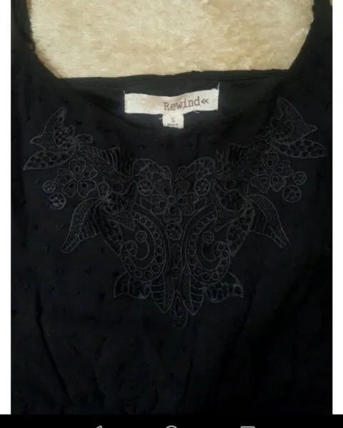 Linda blusa de tirantes, con adornos en relieve, y aplicación bordada marca Rewind, tiene resorte abajo del busto y la parte de abajo tiene una hermosa caída y tiene forro**Talla CH*Sin detalles**Calificación:10*EN PROMO NO APLICA EL ENVÍO GRATIS**NO OFERTAR SI NO PIENSAS COMPRAR**VISITA MI CLÓSET**GRACIAS POR TU PREFERENCIA*