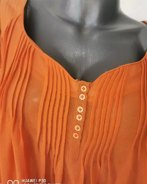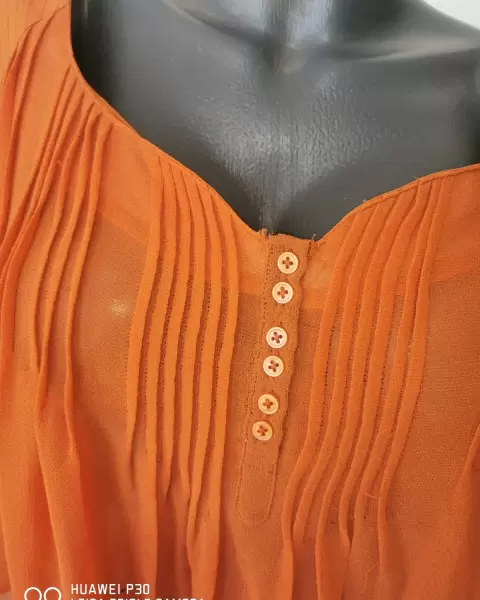 Blusita campesina. La blusa es color Ladrillo queda sueltita.Muy combinable con estilo casual .La prenda tiene un pequeño detalle por dentro que no se nota al ponérsela.No afecta en nada .La prenda no se usó pero se quitaron las etiquetas.Cualquier duda estoy pendiente.No lo pienses y haz tu oferta !!