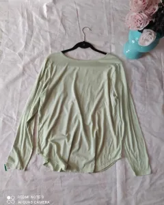 Blusita casual verde pistache, súper bonita! De color muy bonito en la cámara casi no se aprecia talla XL la tela es ligera y suave ideal para la temporada es nueva sin etiqueta