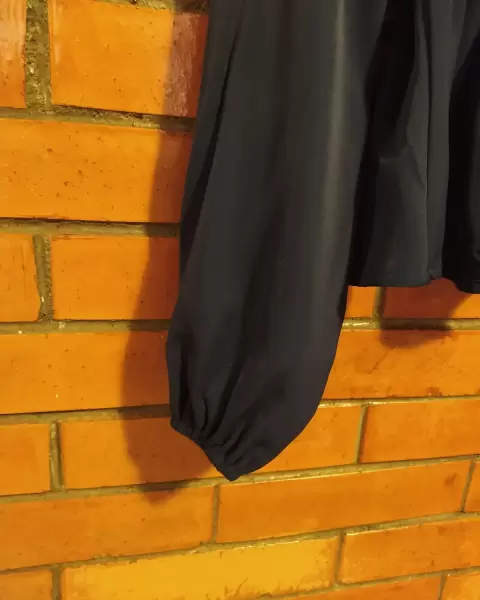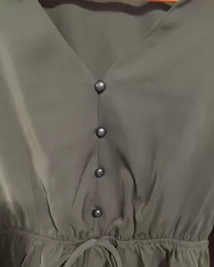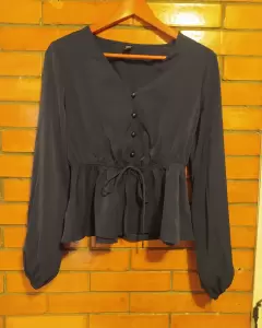 Lindísima blusita azul marino, cuello en V, botones al frente, elástico en la cintura.