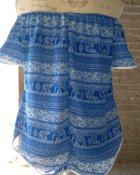 Blusita escotada con estampado. Es totalmente Nueva la blusita de color azul rey con un estampado de elafantes, es cómoda para esta primavera y la tenemos en tres tallas S,M y L