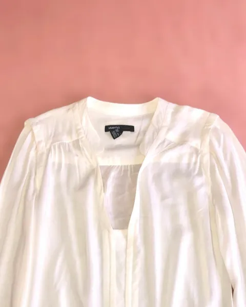 Blusita Mango blanca 😍. Blusa Mango de escote en V, con lindos detalles en los hombros, es ligera y casual, está en perfecto estado 🙌