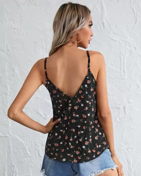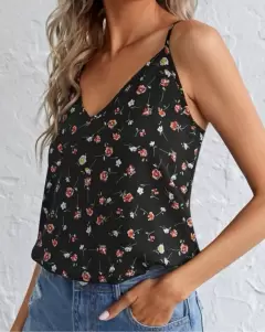Blusita SHEIN talla M. Hermosa y delicada blusita de tirantes ajustables, florecitas y fondo negro talla M, especial para esta temporada de calor🥰