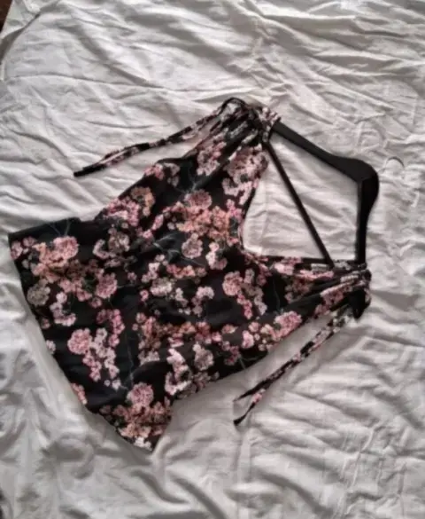 NUEVA💗 HERMOSA BLUSA SIN MANGAS, LAZOS AJUSTABLES. CON FLORES💗💗NUEVA💗NEGRA CON FLORES💗TALLA M💗MARCA CUIDADO CON EL PERRO💗TELA FRESCA💗ESTIRA💗ESCOTE V