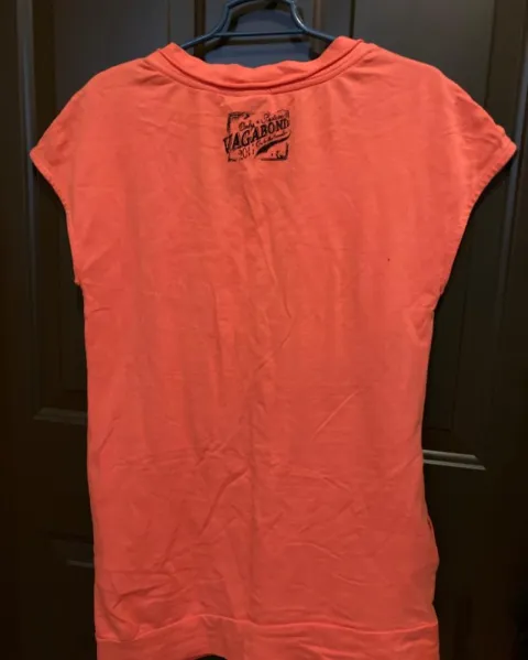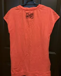 Blusón color salmón,con mangas cortas, bolsas en los laterales con cuello redondo.
