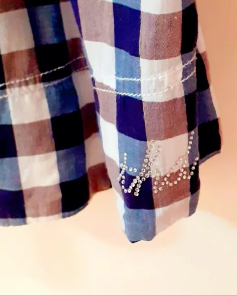 Bluson a cuadros muy comodo y fresco de algodón, pedrería completa, botones originales