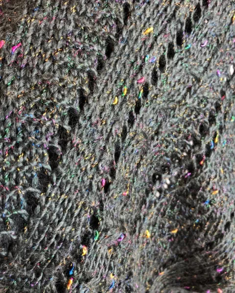 Ni qué decir de este padrísimo blusón 🤩 tejido en color gris con detalles en colores, cuello V.