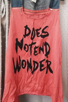 Blusa larga talla L (Puede quedar para talla M igual)Marca Matilda.Por la parte de atrás la tela es transparente.Tiene caída en a los costados en pico→Detalle: No está rota, ni decolorada,al frente donde está las letras hay pequeñas formaciones de borlitas debido a lavadas.