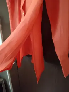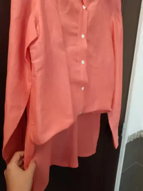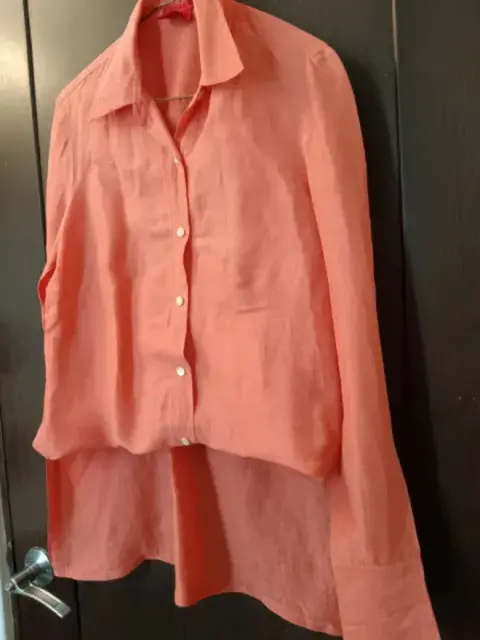 Blusón Vintage color mamey, de tela fresca excelente para climas calurosos para con vinar con Jeans, shorts o se puede usar abierta. ¡Excelentes condiciones!