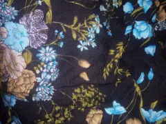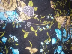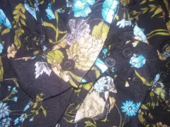 Blusón estampado de plantas. Blusón estampado en plantas en color negro, azul, café, beige. Tiene 10 botones, 2 en cada manga, una bolsa al frente del lado izquierdo. Mide de axila a axila 170 cm y de largo 82 cm, más o menos. Se entrega planchada.