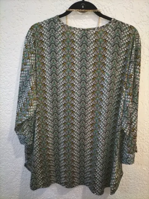 Blusón estampado verde, negro, blanco y amarillo. Blusón estampado color verde, negro, blanco y amarillo con collar incluidoTela poliéster Talla 44