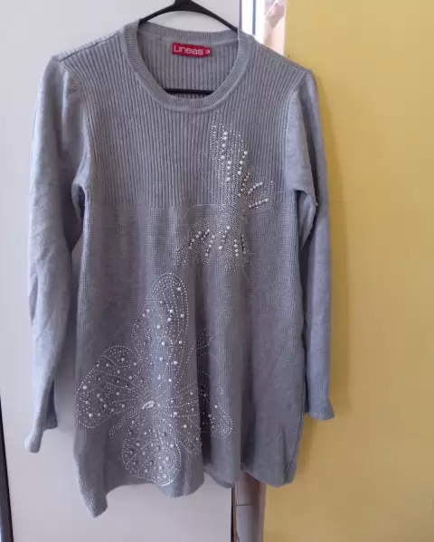 Bluson gris. Bonito bluson con pequeños adornos que lo hacen lucir elegante. Talla S, solo se usó una vez.