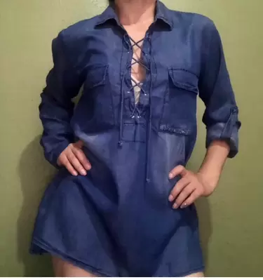 Blusón mezclilla. Hermoso, fresco, tela delgada, nuevo, talla M, oversize, no pasa de moda, medidas hombro 39, axila 48, largo 70, muy padre, checa las fotos,está padrísimo.