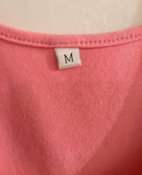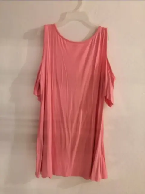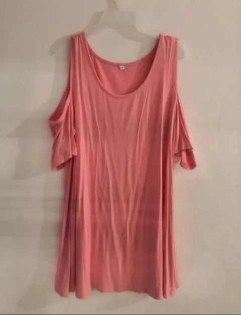 Bluson rosa, fresco, de manga corta con hombro descubierto, talla M pero queda a una G, en la parte del busto tiene una ligera mancha blanca se aprecia en la última foto