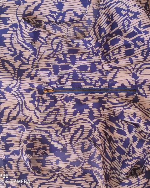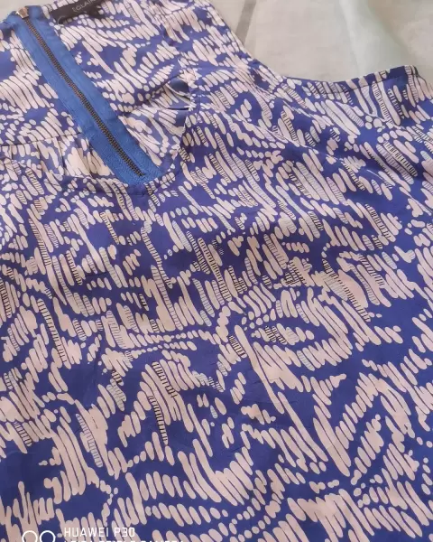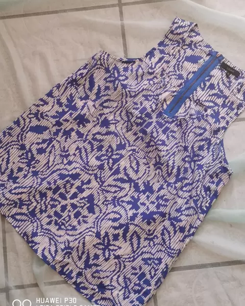 Blusón sin manga ..Trae cierre por la parte de la media espalda .Tela muy fresca ,fácil de lavar y planchar en casa .No estira Queda a una talla 32-34Cualquier duda estoy pendiente