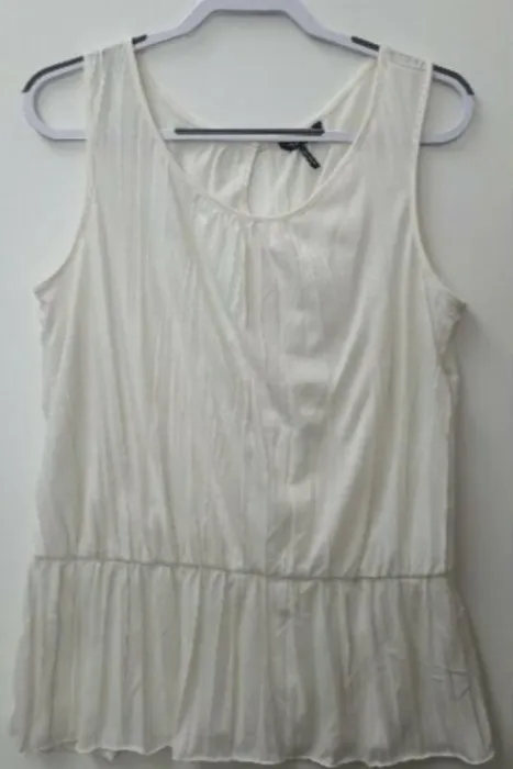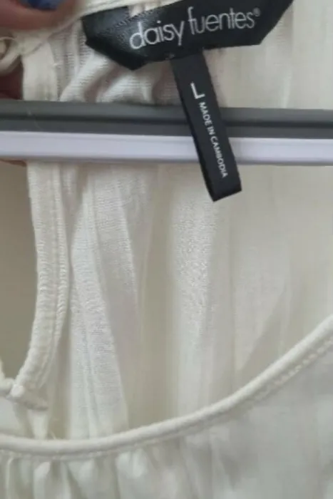 Blusa sin manga tipo blusón marca Daisy Fuentes.En la foto se ve blanco pero es color beige/marfil.La tela es ligeramente plisada. Talla L.Medidas aproximadas: 47cm de axila a axila,47cm de largo a partir de la axila.*TODAS MIS PRENDAS SE DESINFECTAN CON LYSOLLAVANDERIA PARA TU MAYOR TRANQUILIDAD*