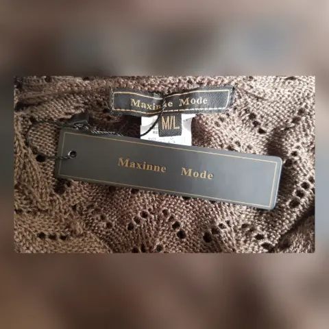 Blusón en tejido de punto canale color TABACO, cuello ruffle y manga corta. Talla M/L. Dimensiones cms: 40 hombro, 50 axila, 41 cintura, 47 zona baja, 69 largo, 16 largo manga. 100% acrílico. Para lavado en casa.