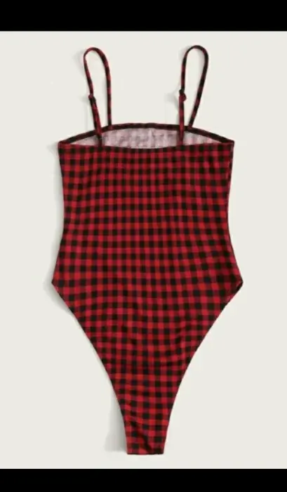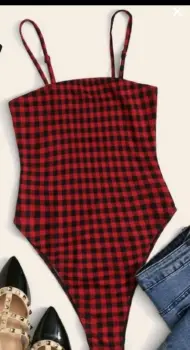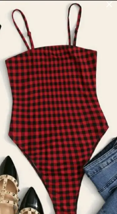 Body a cuadros talla S, color rojo quemado y negro, nunca se uso, sale por limpia de clóset