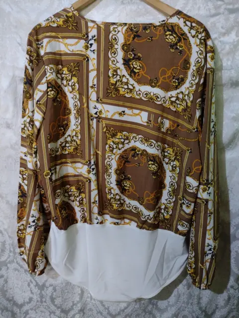 Body con estampado de grecas doradas, completamente nuevo, bastante amplió con cuello en v