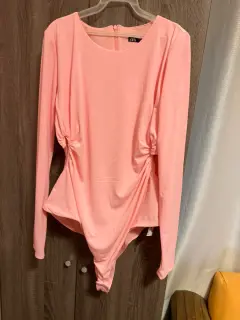 Hermoso body drapeado con aberturas en forma de corazón hermoso talla M confeccionado en tela tipo punto cuello redondo cierre en espalda oculto y broches en la entrepierna nuevo con etiqueta color rosa chicle