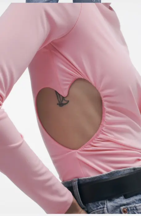 Body cut out corazónes. Hermoso body drapeado con aberturas en forma de corazón hermoso talla M confeccionado en tela tipo punto cuello redondo cierre en espalda oculto y broches en la entrepierna nuevo con etiqueta color rosa chicle